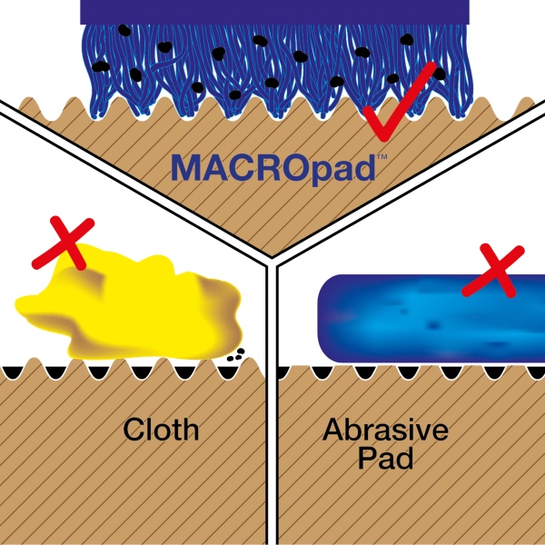 Patented MACROfibre has been independently tested to show that it is up to 1000 X less abrasive than other deep cleaning products on the market.
